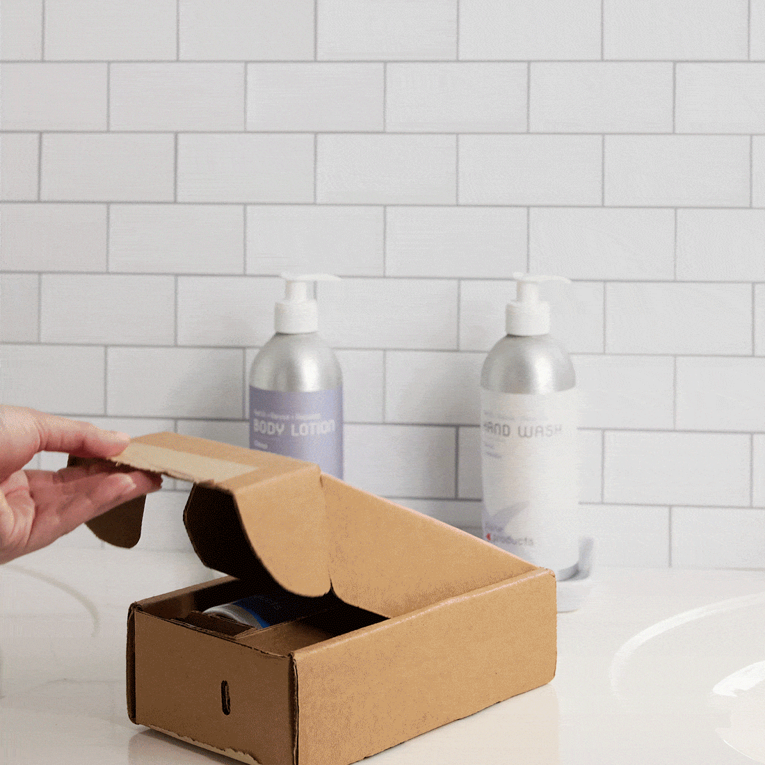 Product arrives, replace lid with pump. Enjoy!